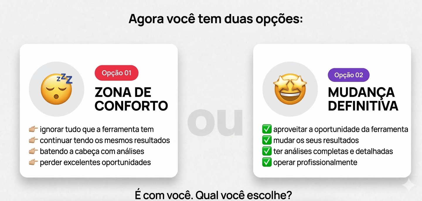 O objetivo da ferramenta é acelerar o aprendizado e apoiar o processo de análise, mas a decisão final sempre deve ser do trader.