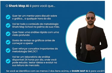 O Shark Map AI é uma ferramenta de análise e aprendizado, que ajuda o trader a desenvolver sua leitura de mercado.