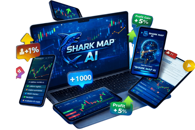 O objetivo do Shark Map AI não é fornecer sinais automáticos, mas sim ajudar o trader a interpretar o gráfico e compreender probabilidades de mercado.